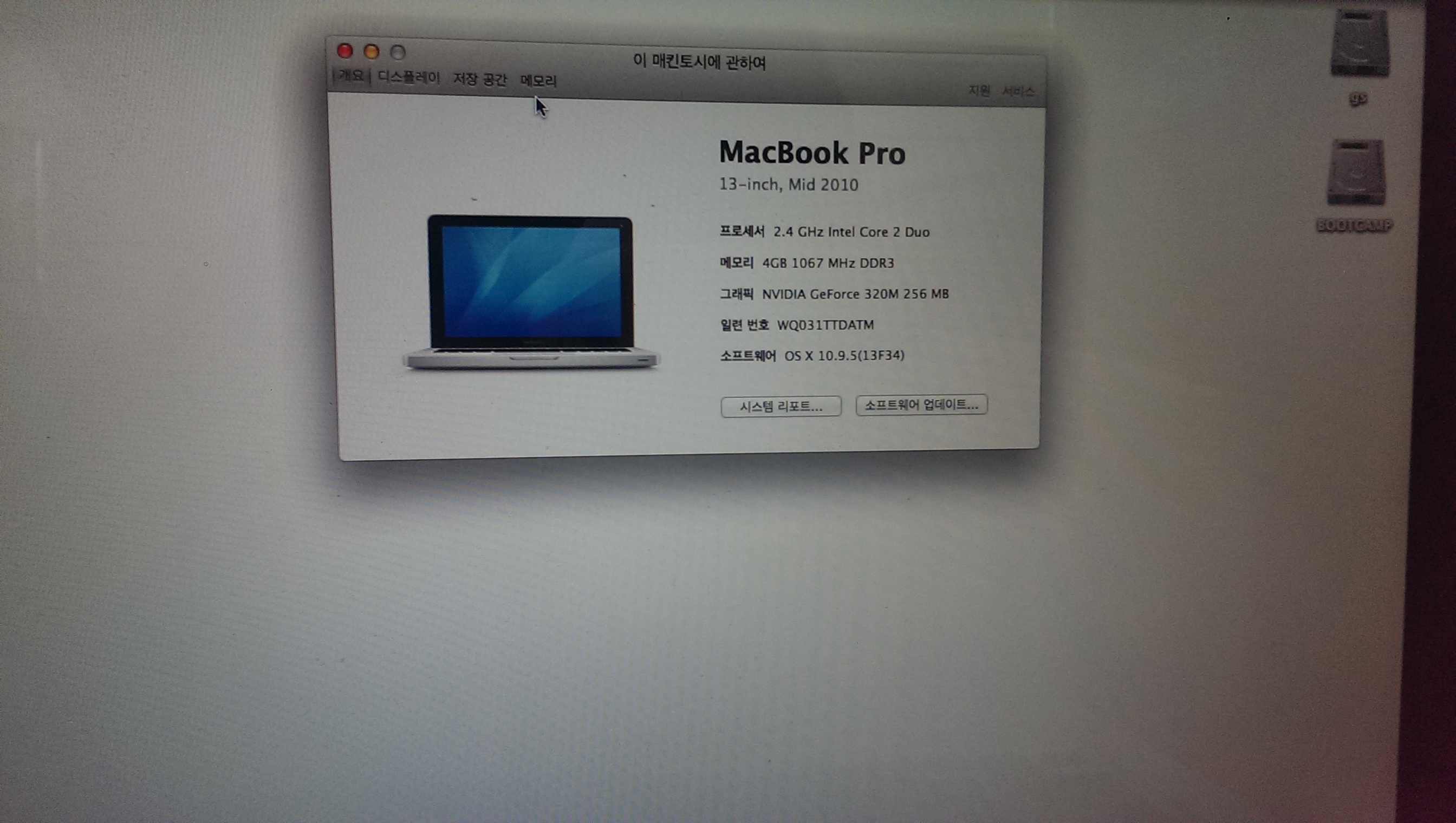 배터리 사이클도 94밖에 되지않구요. 하드용량은 250GB정도 됩니다.