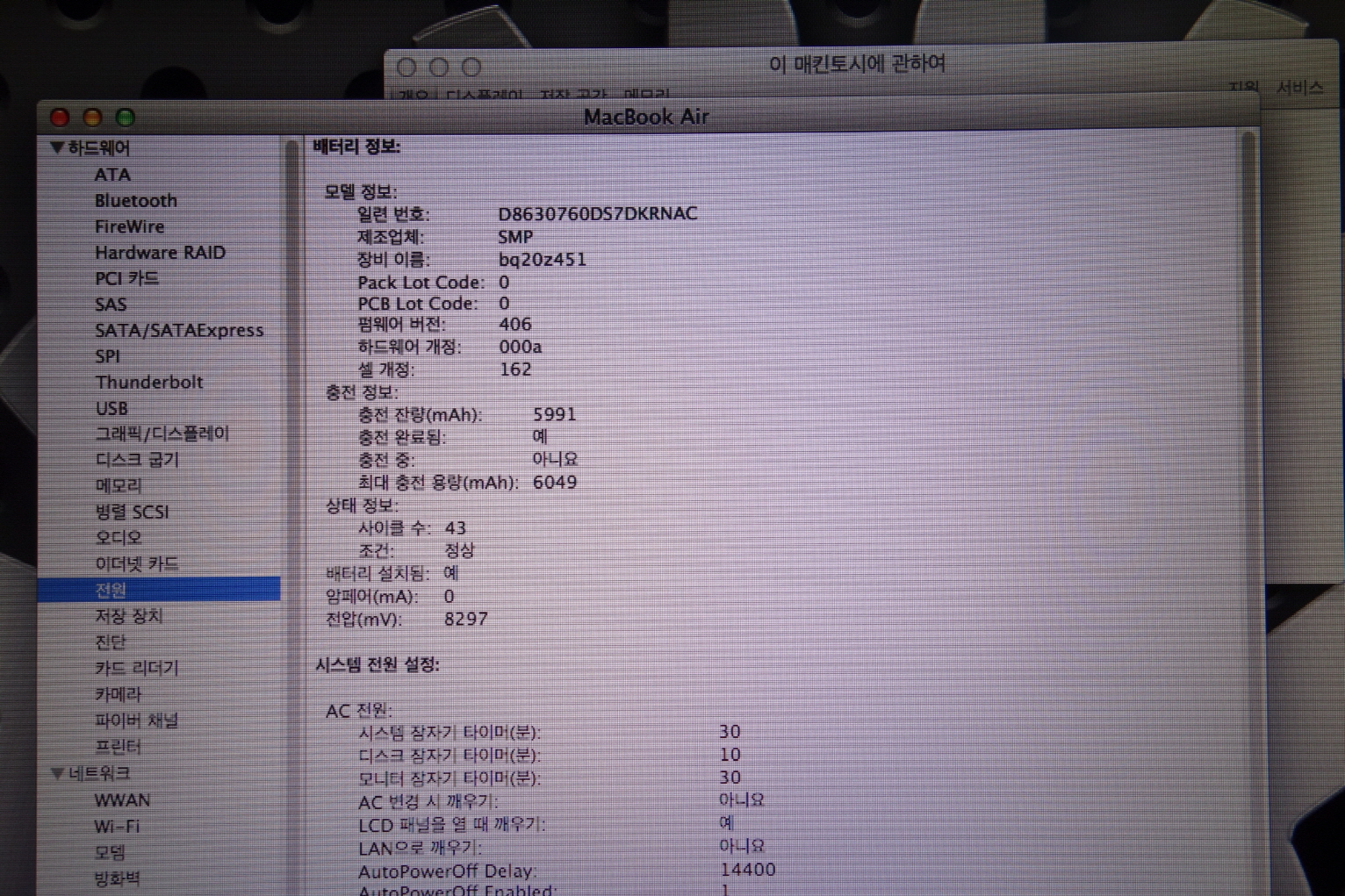 -배터리 사이클 43 인증샷입니다. (OS 초기화 전 촬영)