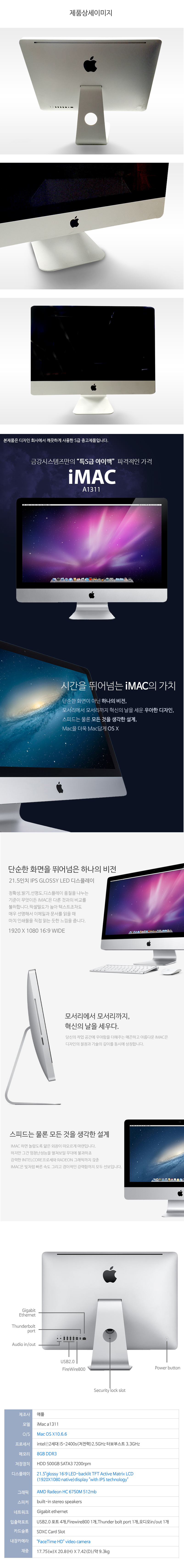 아이맥 쿼드코어 i5-2.5G DDR3-8G 21.5형 판매합니다.