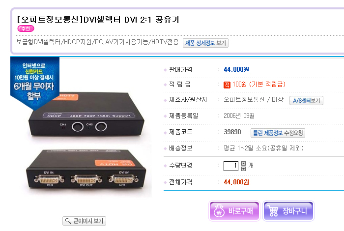 DVI 셀렉터 DVI 2:1 공유기라는데요..