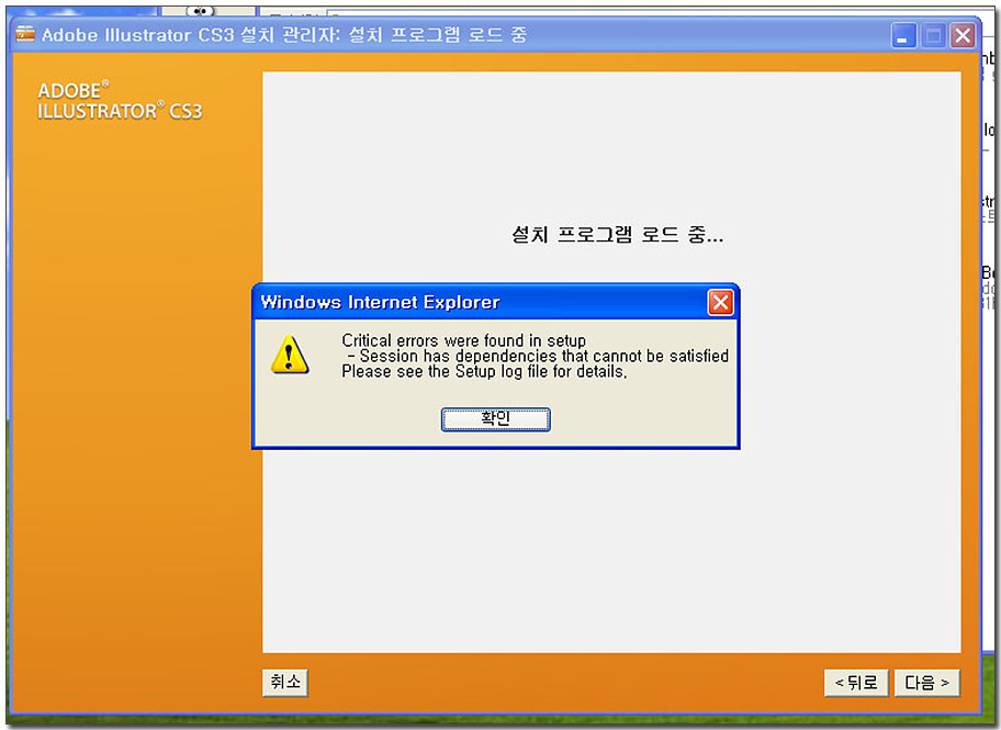 cs3를 다시설치하려고 하는데 에러가 뜨고 설치를 못하겠네요