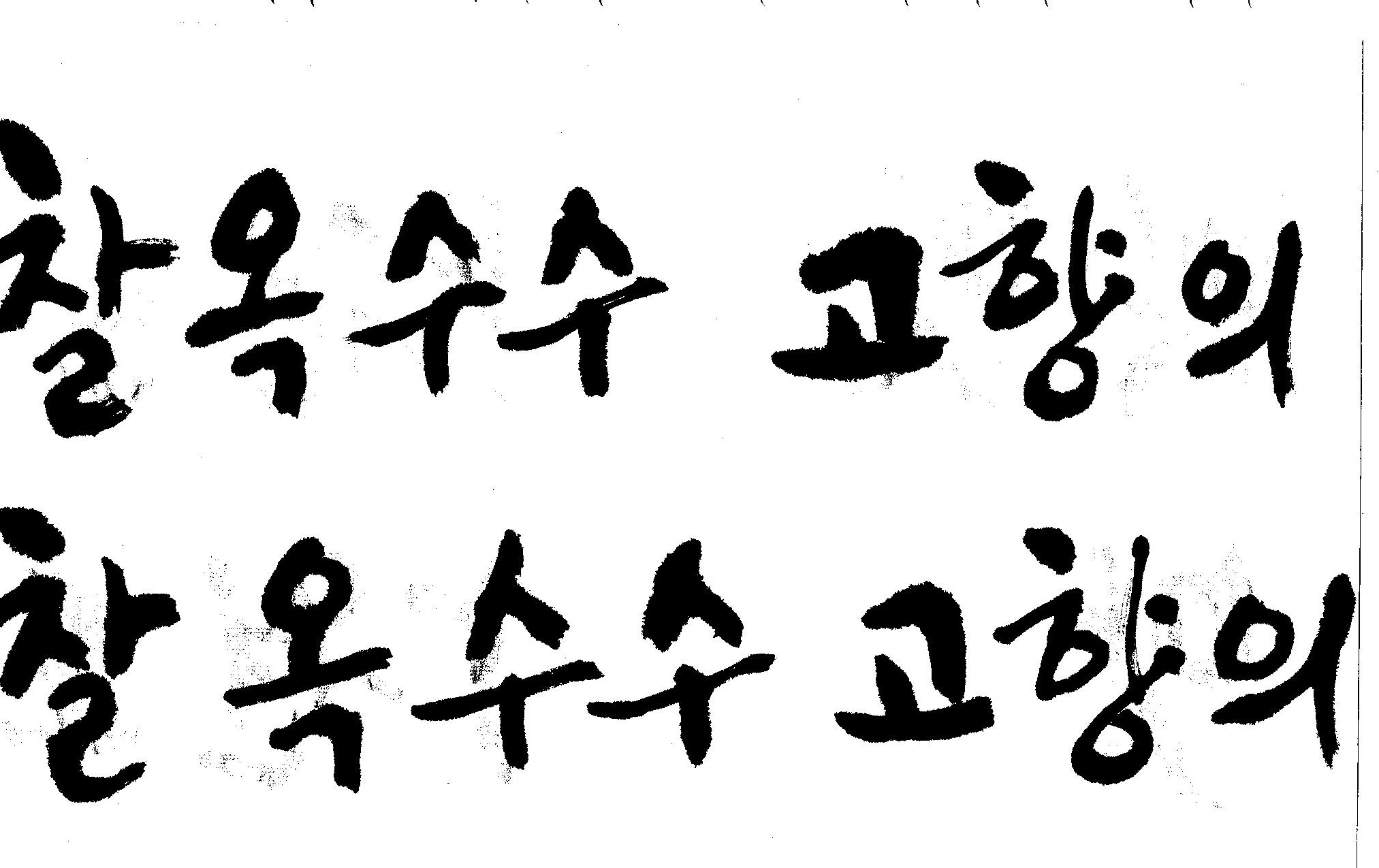 캘리고수님.. 캘리 부탁드립니다. 김철호 일반 1 10511 2008.10.31 15:44 > > 강원도 > 찰옥수수 > 고향의 맛 > > 이상의 문구 입니다. > 캘리 고수님들 시간되시면 도움 부탁드립니다.. > 유용하게 쓰시길 , 스캔이 깨끗하지 못해서 수고 좀 하셔야 겠네요.. "맛"이 라는 글자가 잘 않나와서 따로 올립니다.