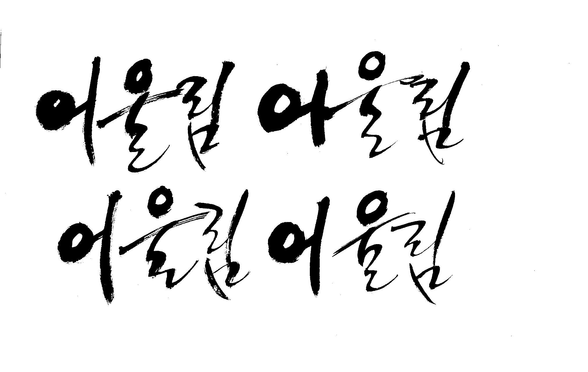 켈리 부탁좀 드릴께요~ 김철호 일반 1 7547 2009.01.14 10:48 > > 책표지에 나갈 글씨로 '어울림'이란 켈리를 쓰고싶은데요... > 도와주세요~ > 좋은 글이라서... 긴....습작시간이 있었지만 결과물이 왜소하네요 유용하게 쓰시길...