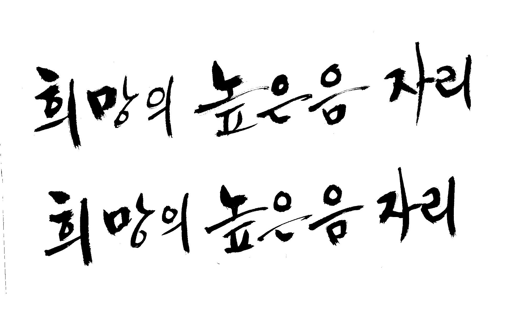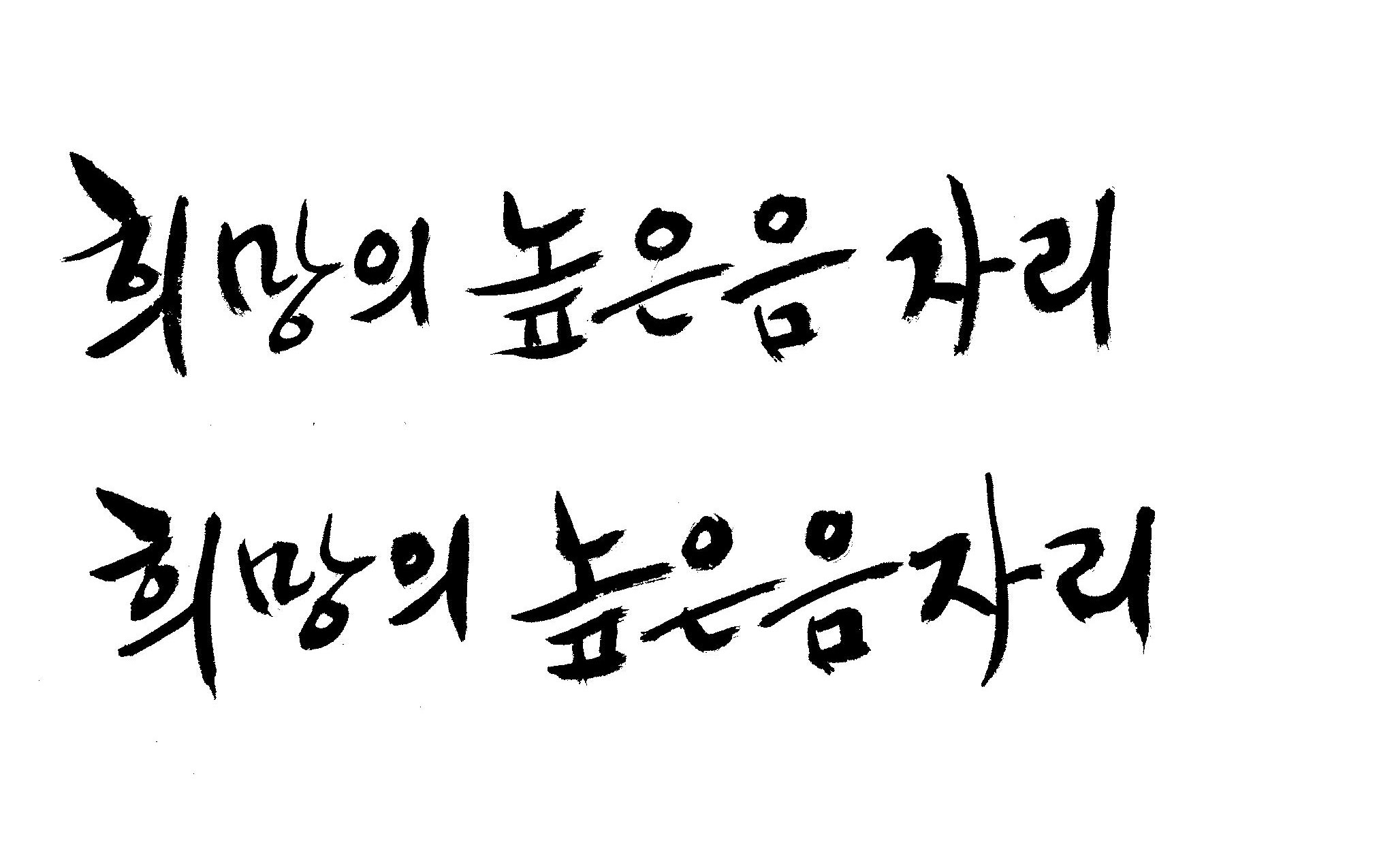 저도 캘리좀부탁이요 ^^;; 김철호 일반 0 6040 2009.01.14 10:59 > > 희망의 높은음자리 > > 감사합니다 ^^ 꼭부탁드려욧 ㅎㅎㅎ > 좋은 글이라서 신경썼는데 만족할 만큼 않나왔네요.. 유용하게 쓰시길...